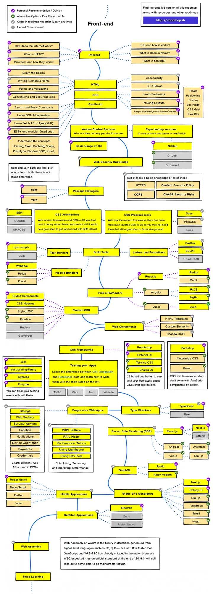 به طور معمول، یک فرد با یادگیری توسعه HTML، CSS، و جاوا اسکریپت که معمولاً در یک مرورگر وب اجرا می شود، اما می تواند در یک مرورگر بدون هد، WebView یا به عنوان ورودی کامپایل برای یک محیط زمان اجرا بومی اجرا شود، وارد حوزه توسعه front-end می شود. . این چهار سناریو زمان اجرا در زیر توضیح داده شده است.